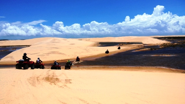 Um dos melhores passeios e mais procurado para os Lençóis Maranhenses é o de Quadriciclo. Para você não ter nenhuma duvida sobre esse passeio único, vamos explicar como ele acontece detalhadamente. O passeio de quadriciclo tem duração de um dia inteiro, e o melhor de tudo é que o próprio cliente vai pilotando essa maquina.